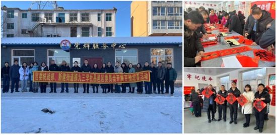 歲末寒冬辭舊歲,翰墨飄香迎新春。為弘揚(yáng)中華優(yōu)秀傳統(tǒng)文化,凝聚統(tǒng)一戰(zhàn)線人心力量,切實(shí)把新春關(guān)懷送到基層群眾身邊,近日,吉林市昌邑區(qū)區(qū)委統(tǒng)戰(zhàn)部聯(lián)合九三學(xué)社昌邑區(qū)委員會(huì),走進(jìn)新建街道開(kāi)展“百福迎春”文化惠民活動(dòng)。區(qū)委常委、統(tǒng)戰(zhàn)部部長(zhǎng)葛森,九三學(xué)社昌邑區(qū)委員會(huì)和新建街道相關(guān)負(fù)責(zé)同志,統(tǒng)戰(zhàn)部全體機(jī)關(guān)干部參加活動(dòng)。