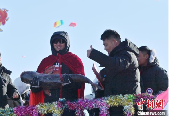 查干湖第23屆冰雪漁獵文化旅游節(jié)28日開幕,海內(nèi)外數(shù)萬游客爭睹“冰湖騰魚”勝景。最受關(guān)注的拍賣環(huán)節(jié),“頭魚”以1199999元的價格被一家企業(yè)拍得。