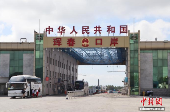 7月19日,吉林琿春,運(yùn)輸?shù)弁跣返目ㄜ?chē)排隊(duì)入關(guān)!≈行律缬浾 蔣文月 攝