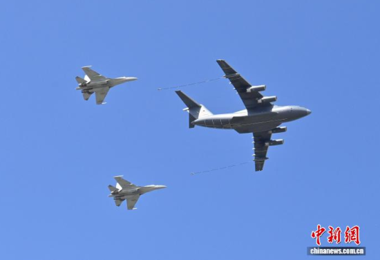 9月16日,吉林長春,運油-20A(右一)與殲-16雙機編隊通場。 張瑤 攝