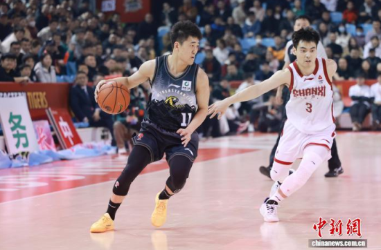 3月15日晚,吉林長春,吉林隊姜偉澤(左一)持球進(jìn)攻!≈行律缬浾 張瑤 攝