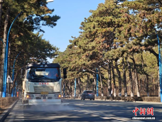 圖為洗掃車正在進(jìn)行巡回作業(yè)。金喬 攝