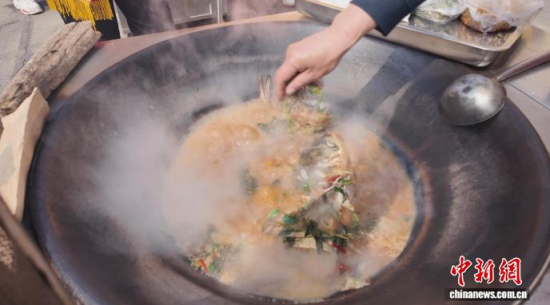 這個(gè)坐落于松花湖畔的小鎮(zhèn),在清明時(shí)節(jié)迎來(lái)新一輪吃魚熱度!伴_江魚最鮮,就是這口鮮味兒,讓咱們鎮(zhèn)出了名!备鹬覀ゲ亮瞬令~頭的汗珠,憑經(jīng)驗(yàn)把控著魚肉出鍋的最佳時(shí)機(jī)。