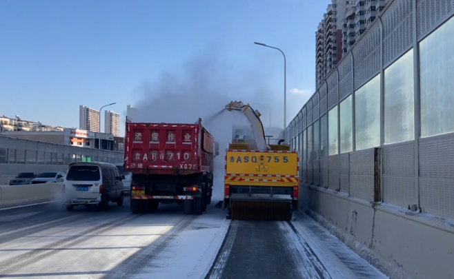 李文秀介紹,早高峰結(jié)束后,次要街路立即啟動(dòng)全面清雪作業(yè);針對(duì)快速路及主要街路路面積雪已被車輛壓實(shí)的情況,已第一時(shí)間采取融冰融雪處置措施,于中午12時(shí)以后啟動(dòng)反復(fù)清掃作業(yè),同步調(diào)配運(yùn)雪車輛開(kāi)展邊清邊運(yùn),最大限度降低路面積雪存量。