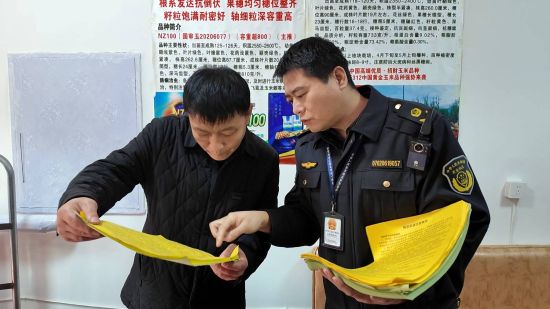 檢查過程中,市農(nóng)業(yè)農(nóng)村局的執(zhí)法人員還同步開展普法宣傳,指導農(nóng)戶掃碼核驗、科學選購,提升識假辨假與維權能力。對備案不規(guī)范、資質(zhì)不全、公示不到位等問題,現(xiàn)場下達責令整改通知書,限期整改、跟蹤銷號。