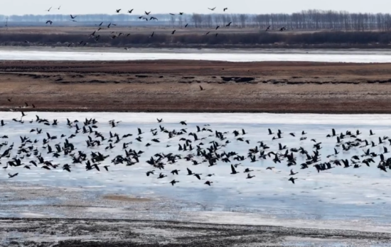 吉林長(zhǎng)春伊通河畔春來(lái)早 近千只水鳥(niǎo)舞翩躚