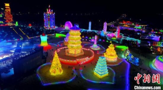12月12日晚,長春冰雪新天地開門迎客。主題為“冰雪絲路 龍騰盛世”的長春冰雪新天地園區(qū)占地面積達(dá)156萬平方米,用冰量42.8萬立方米、用雪量31萬立方米,建設(shè)冰雪建筑120組。