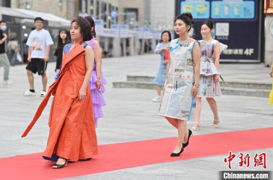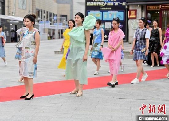 6月5日,吉林長(zhǎng)春,模特身穿綠色環(huán)保時(shí)裝走秀。值此世界環(huán)境日來(lái)臨之際,長(zhǎng)春開(kāi)展“塑制霓裳·環(huán)保領(lǐng)航”綠色環(huán)保時(shí)裝秀表演活動(dòng)。民眾將廢舊的報(bào)紙、塑料袋等廢舊物品變成了美麗的衣裳,宣傳環(huán)保意識(shí)。張瑤 攝