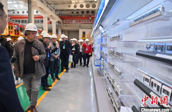 10月14日,吉林長春,外賓在中車長客體驗地鐵列車。當天,50多個國家的200多名政黨領導人、部分外國駐華使節(jié)和外國在華工商界代表等到訪吉林長春,赴中國一汽、長光衛(wèi)星、中車長客等科技企業(yè)參觀,點贊制造業(yè)尋求合作機會。中新社記者 張瑤 攝