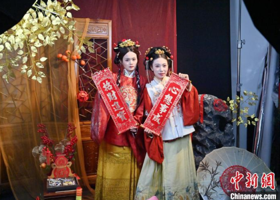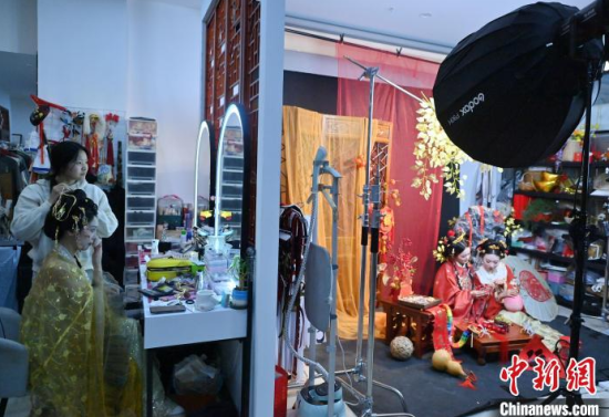 1月6日,吉林長(zhǎng)春,市民在拍攝漢服寫真。店家介紹,農(nóng)歷蛇年春節(jié)將至,漢服寫真成了顧客新需求,店家特推出百梅迎春、金蛇賀歲、招財(cái)進(jìn)寶等主題,深受市民喜愛(ài)。中新社記者 張瑤 攝