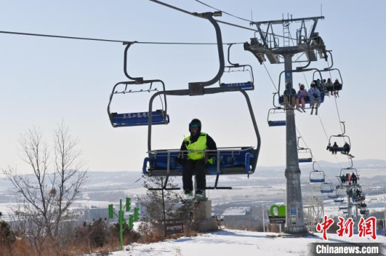 1月15日,在位于長春的天定山滑雪場,何海東在檢查雪道護(hù)網(wǎng)。何海東是一名滑雪巡救員,雪季期間,雪友數(shù)量激增,何海東的工作也變得異常繁忙。他要在零下二十?dāng)z氏度的天氣中日行三萬步,全面巡查雪道環(huán)境,排查安全隱患,如有意外他將第一時間對傷者實(shí)施救助。中新社記者 張瑤 攝