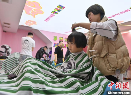 3月1日,農(nóng)歷二月初二,在吉林長(zhǎng)春一家兒童理發(fā)店,家長(zhǎng)紛紛帶著孩子來(lái)“剃龍頭”,理發(fā)店還為孩子們?cè)O(shè)計(jì)了各種有趣的發(fā)型。中新社記者 張瑤 攝