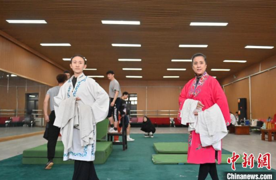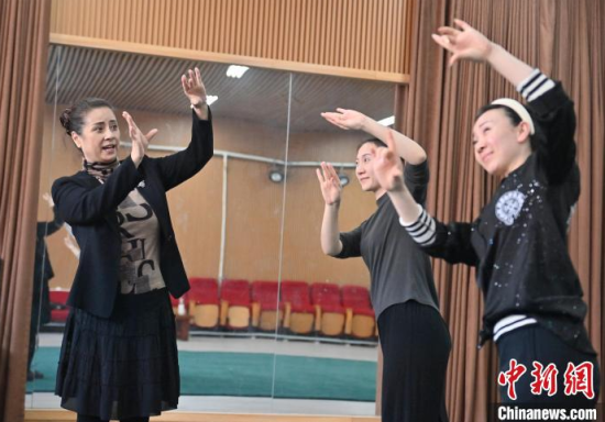 4月10日,在位于吉林省長春市的吉林省吉劇團,安靜芳(左)在為青年演員說戲。近期,中國文化和旅游部公布第六批國家級非物質文化遺產代表性傳承人名單,吉劇代表性傳承人安靜芳位列其中。入行超過四十年的她,曾塑造了樊梨花、鐵扇公主等眾多經典角色。近年來,她退居幕后潛心授藝培育新人,以匠心守護這門年輕劇種的傳承發(fā)展。中新社記者 張瑤 攝