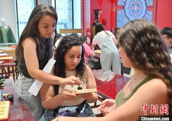 6月24日,吉林長春,埃及青年體驗活字印刷術。當天,來自美國、埃及、印度尼西亞等國家的青年在長春體驗泥塑、活字印刷術,參觀一汽紅旗文化展館,近距離感受中國文化的魅力。中新社記者 張瑤 攝