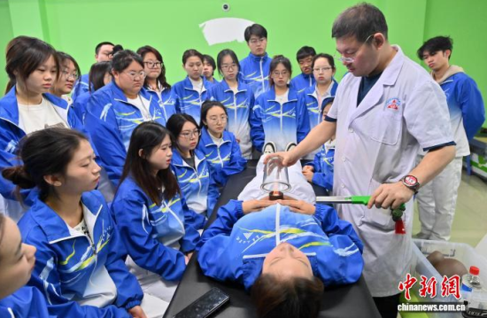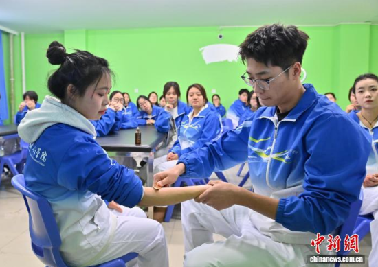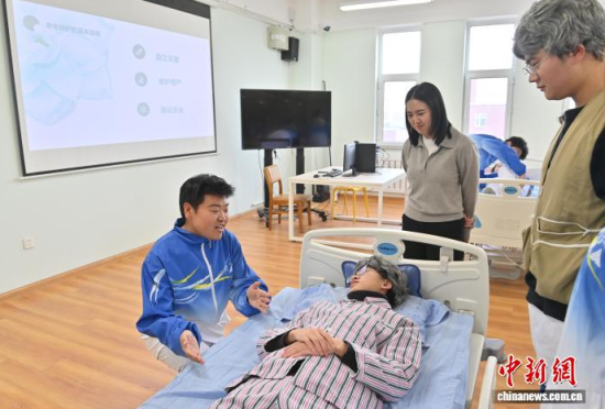 12月15日,在長春人文學院,學生在實操介護技術。面對老齡化進程與銀發(fā)經(jīng)濟發(fā)展,該校開設了養(yǎng)老服務管理專業(yè),融合管理學、心理學、護理學等,設置介護福祉綜合實訓、老年康樂活動策劃與實施綜合實訓、智慧養(yǎng)老實務等近30門課程,培養(yǎng)既懂運營管理又具備實操技能的復合型人才,吸引年輕人投身這一“朝陽產業(yè)”。中新社記者 張瑤 攝