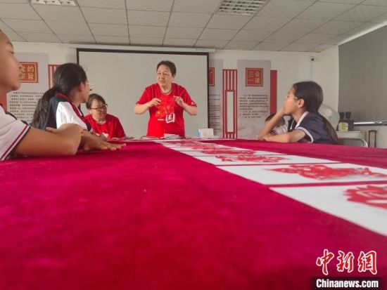 蘇一航(左一)正在剪紙!∈橛 攝