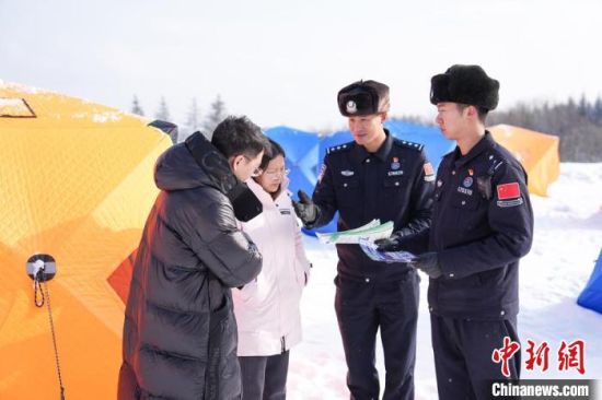 1月6日,吉林撫松,漫江邊境派出所民警向游客進行反詐騙宣傳。袁睿 攝