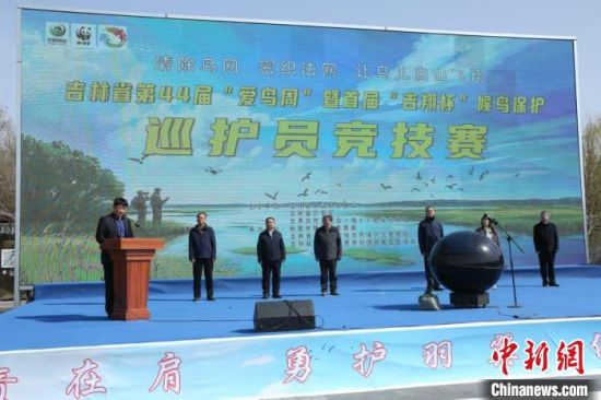 中新網(wǎng)松原4月23日電 (張瑤 魏靜 王靖)23日,吉林省第44屆“愛鳥周”暨首屆“吉翔杯”候鳥保護(hù)巡護(hù)員競(jìng)技賽啟動(dòng)儀式在吉林查干湖國(guó)家級(jí)自然保護(hù)區(qū)舉行。