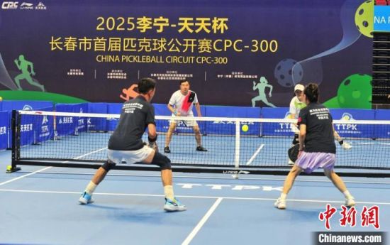 中新網(wǎng)長(zhǎng)春6月28日電 (李彥國(guó))在“羽毛球場(chǎng)地”用“乒乓球拍”打塑料“網(wǎng)球”,被稱為“三球合一”的匹克球運(yùn)動(dòng)因上手容易、成本親民等特點(diǎn)正持續(xù)走紅。