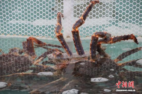 中新社記者近日走進這座吉林省對俄公路口岸了解到,每年經(jīng)此入境的俄羅斯帝王蟹超過150萬只,占全國市場的八成左右,是中國進口帝王蟹最重要的門戶。